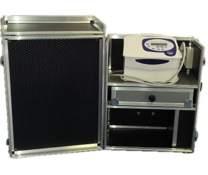 Al uw pedicurebenodigheden bij de hand in één koffer en direct te gebruiken door de ingebouwde stroomaansluiting, voorzien van een tweevoudig stopcontact voor de motor en de lamp + een automatisch oprolbaar snoer met een lengte van 5 meter.