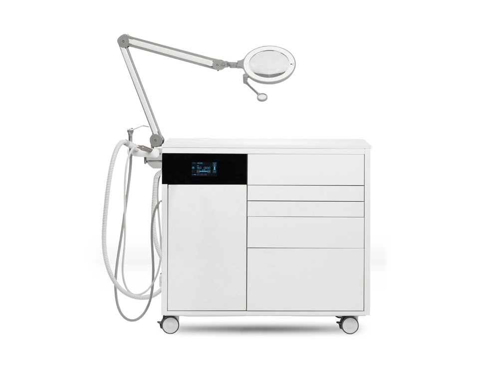 Deze nieuwe pedicureunit (werkmeubel) wordt door ons geleverd in 2 verschillende handstuk uitvoeringen en met of zonder LED verlichting op het handstuk.